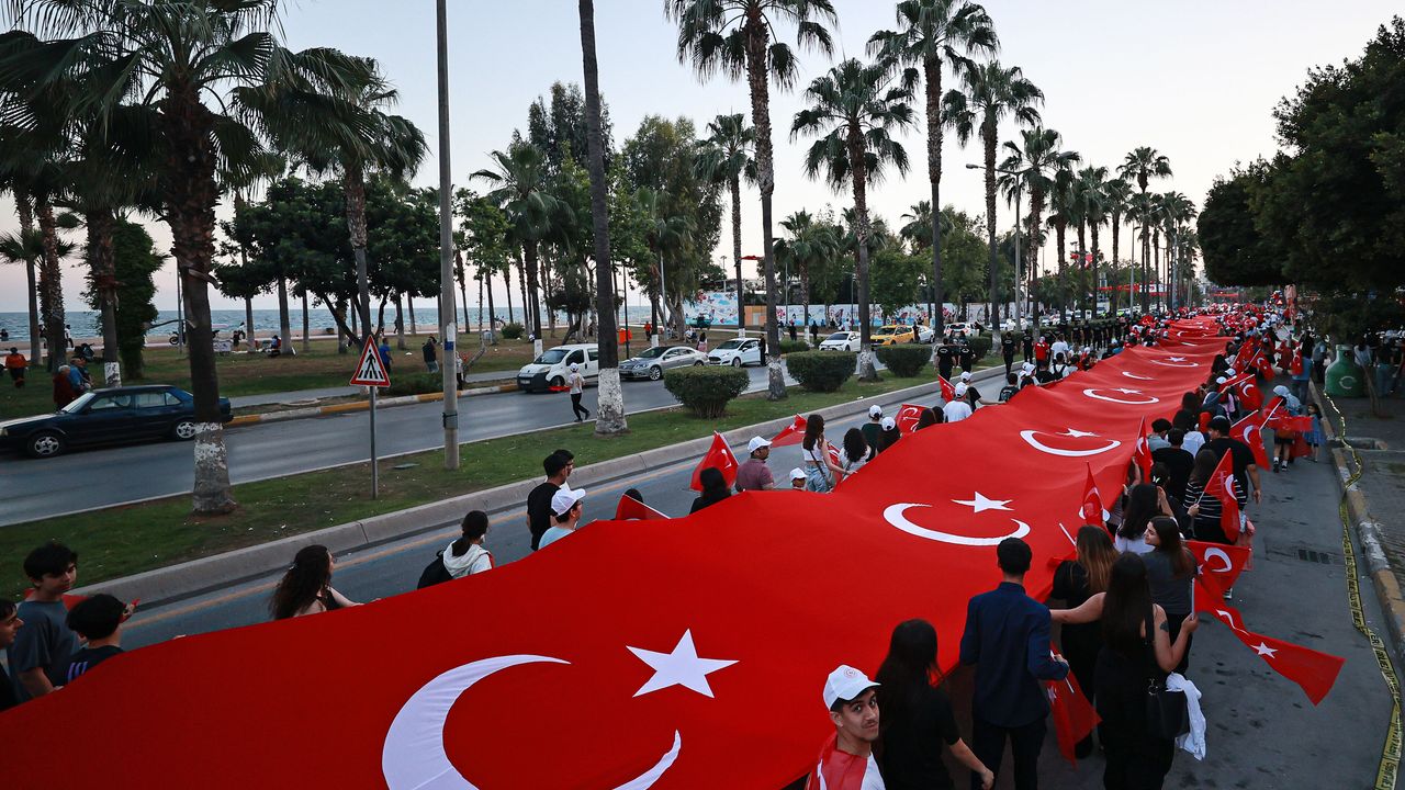 Ardından Kaymakamlık binası önünde bir araya gelen vatandaşlar, ellerinde Türk bayraklarıyla sahil meydanına yürüdü.