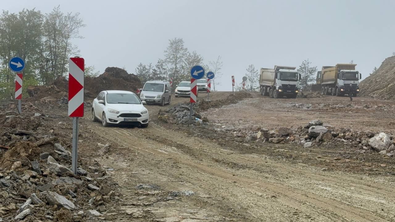Ekiplerin yoğun şekilde çalışmalarını sürdürdüğü kara yolunda zaman zaman etkili olan sağanak, çalışmaları zorlaştırıyor.