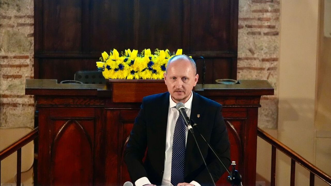 Başkonsolos Nedilskyi, konuşması sırasında davetlileri, Ukrayna'da hayatını kaybedenler için bir dakikalık saygı duruşuna davet etti.