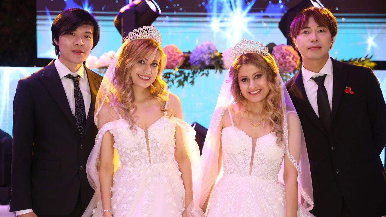 Tek yumurta ikizleri Nagehan ve Neslihan Kılavuz, kentteki bir düğün salonunda düzenlenen törenle Tayvanlı Hajun Hong ve YuFan Shih ile evlendi.