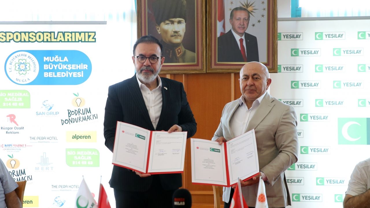 Muğla Sıtkı Koçman Üniversitesi VİP Salonu'nda düzenlenen törende, İletişim Başkanlığı Muğla Bölge Müdürü Erol Kütahya ile Yeşilay Şube Başkanı Şenol Şengür protokole imza attı.