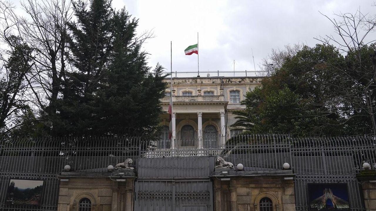 Bu kapsamda, İstanbul'daki İran İslam Cumhuriyeti Başkonsolosluğu'nda da bayraklar yarıya indirildi.