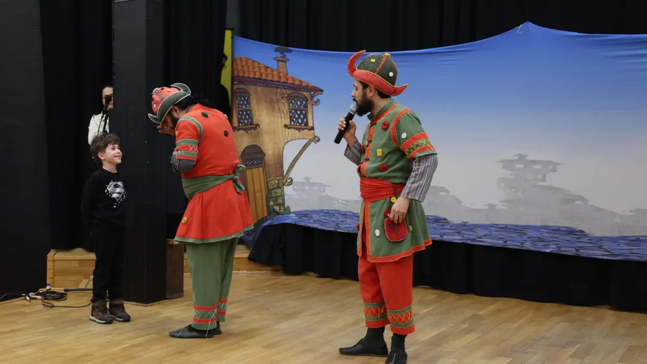 Hacivat ile Karagöz’ün eğlenceli atışmaları minik izleyicilere kahkaha dolu dakikalar yaşattı.