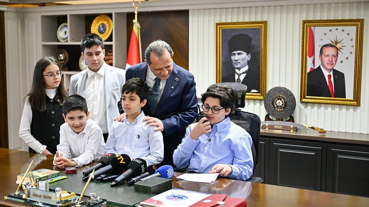 Bir süre çocuklarla sohbet eden Yıldız'ın koltuğuna, aynı zamanda Terakki Vakfı Okullarında eğitim gören Yusuf Alp Cevher temsili olarak oturdu.