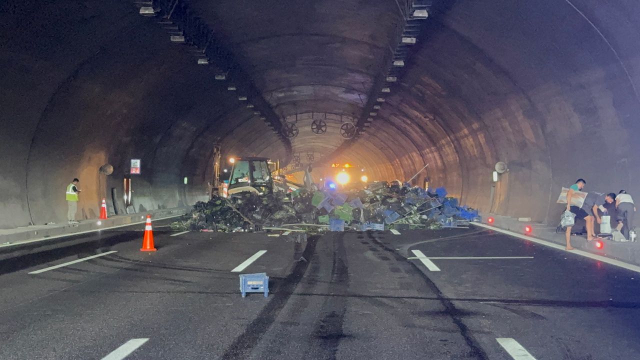 Dorsedeki sebze yüklü kasalar yola savrulurken, tünel de ulaşıma kapandı.