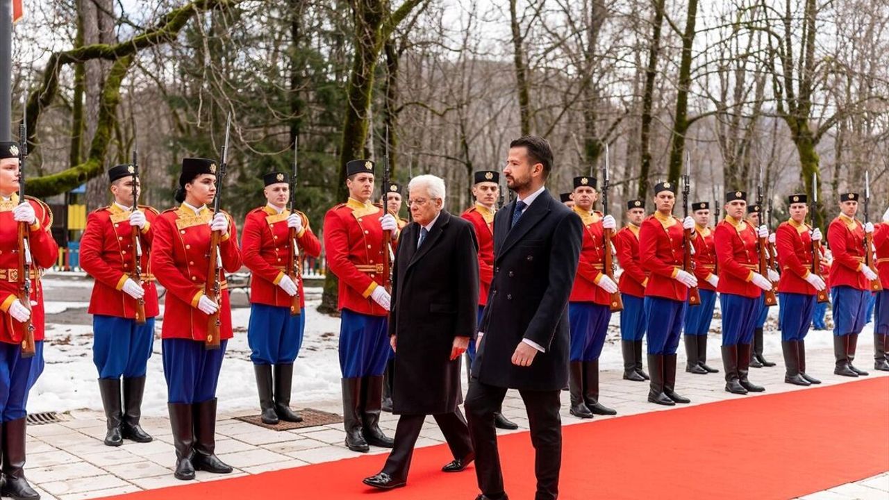 Resmi temaslarda bulunmak üzere Karadağ'ı ziyaret eden Mattarella, Cetinje kentindeki Cumhurbaşkanlığı Konutu'nda mevkidaşı Jakov Milatovic tarafından resmi törenle karşılandı.