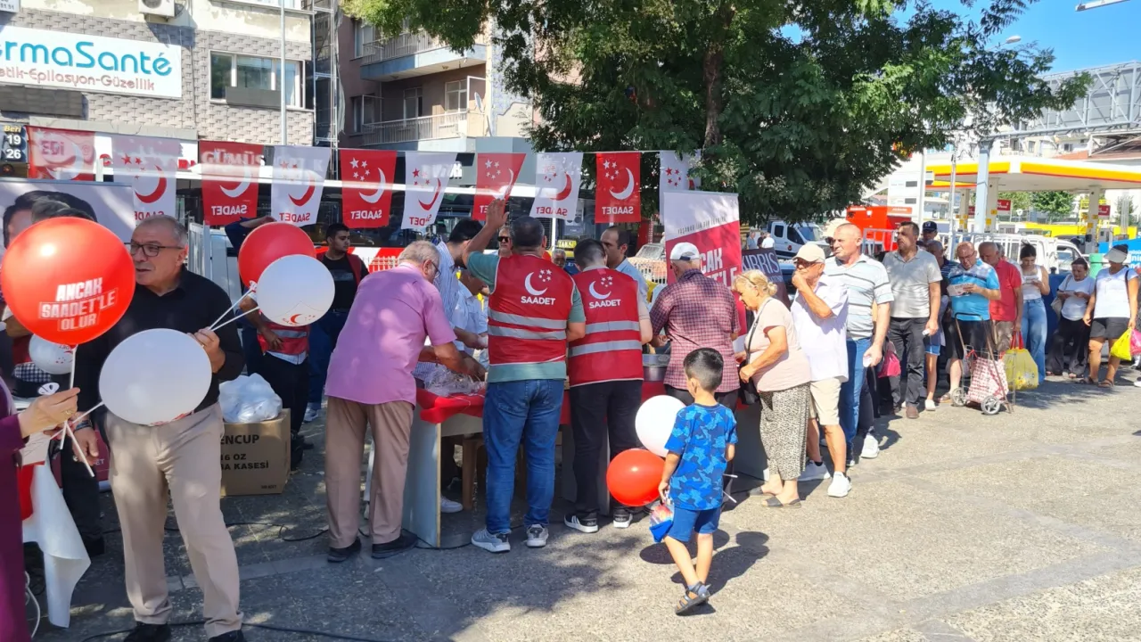 Saadet Partisi'nin 24'üncü yılı dolayısıyla İzmir'de Buca İlçe Başkanlığı, Şirinyer Parkı önünde kurulan stantta vatandaşlara aşure ikramı ile çocuklara balon dağıtımı yaptı.İZMİR (İGFA) - Saadet Partisi, 24'üncü yaşını çeşitli etkinliklerle kutluyor.