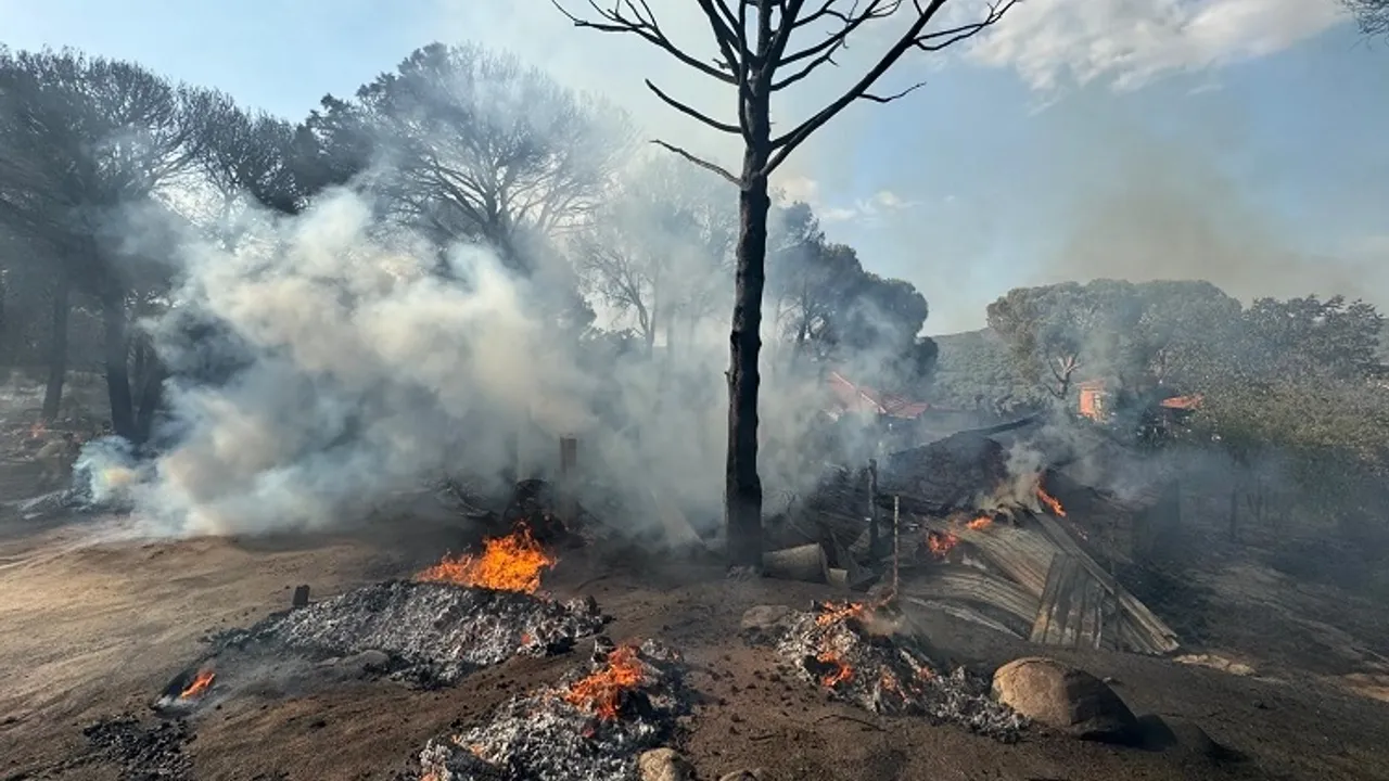 İzmir Bergama ilçesinde çıkan orman yangını, İzmir Büyükşehir Belediyesi İtfaiye Dairesi Başkanlığı ekipleri ve Orman Bölge Müdürlüğü ekipleri tarafından kontrol altına alınmaya çalışılıyorİZMİR (İGFA) - İzmir’in Bergama ilçesine bağlı Demircidere Mahallesi’nde bugün saat 15.30 sıralarında orman yangını çıktı. Şiddetli rüzgarın etkisiyle hızla yayılan alevler, Yukarıbey Mahallesi’ne de ulaşarak evlere sıçradı.