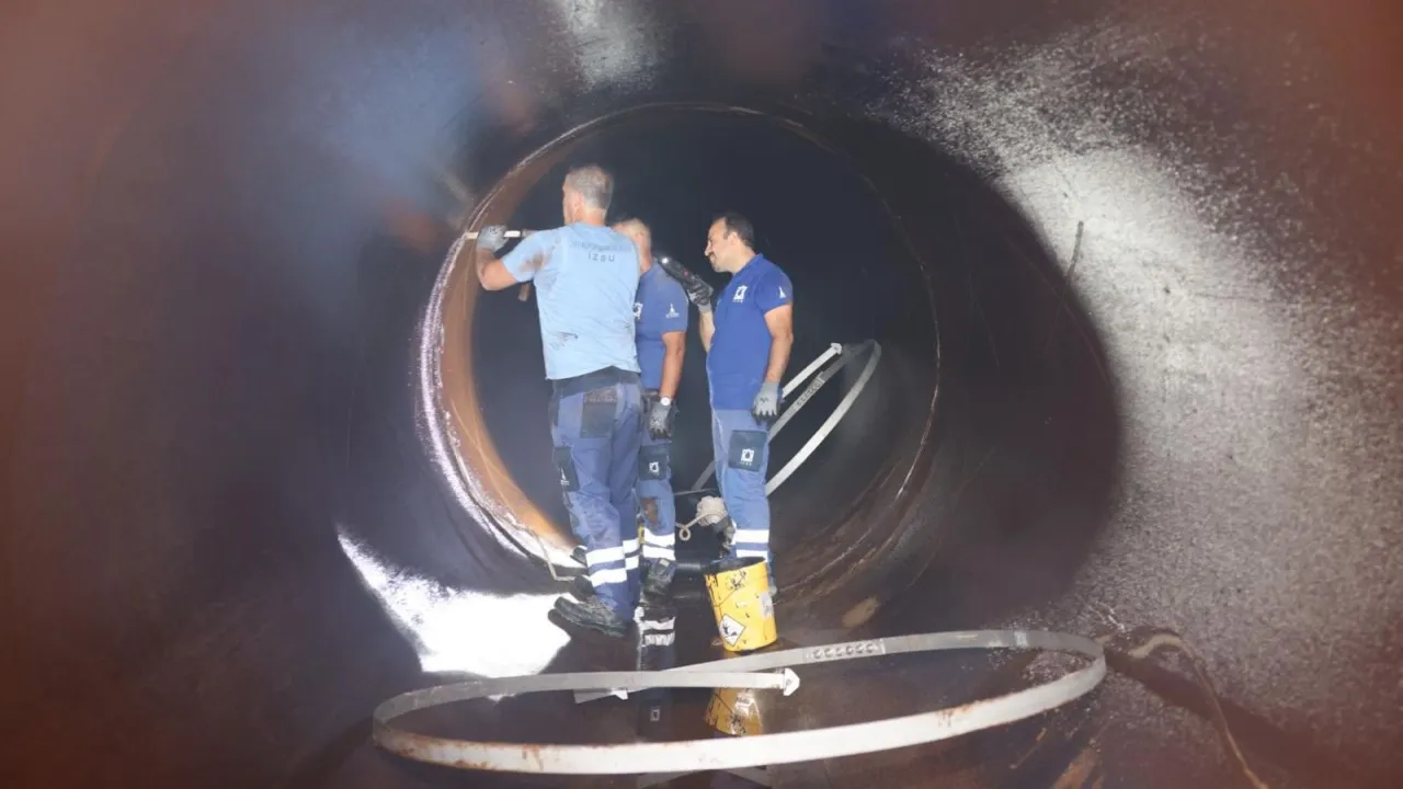 Güzelhisar (Petkim) Barajı ile Sarıkız ve Göksu Kuyuları’ndan şehrimize su taşıyan 2,2 metre çapındaki ana su isale hattında dün gece büyük bir patlak meydana geldiğinin altı çizilen açıklamada, "Çiğli 9 Eylül Mahallesi’nde yerin 3 metre altında gerçekleşen bu patlağa, ekiplerimiz kısa sürede müdahale etmiştir. Öncelikle ana isale hattındaki su boşaltılma işlemi başlatılmış ve eş zamanlı olarak vatandaşlarımıza SMS ve sosyal medya hesapları aracılığıyla bilgilendirme yapılmıştır. Su boşaltma işleminin ardından ekiplerimiz, en yakın baca noktasından girerek, yer altından 470 metre ilerleyerek arızaya müdahale etmiştir. Arızalanan hattaki boru çapının büyüklüğü ve teknik özelliklerine uygun olarak boru içinden ve dışından başlatılan onarım işlemleri gece boyunca devam etmiş ve çalışma tamamlanmıştır. 42 km uzunluğunda ve 2,2 metre çapındaki isale hattına verilecek suyun uygun seviyeye gelmesinin ardından, bu gece saat 22.00’de vatandaşlarımıza suyu ulaştırmayı hedeflemekteyiz.” ifadeleri yer aldı.