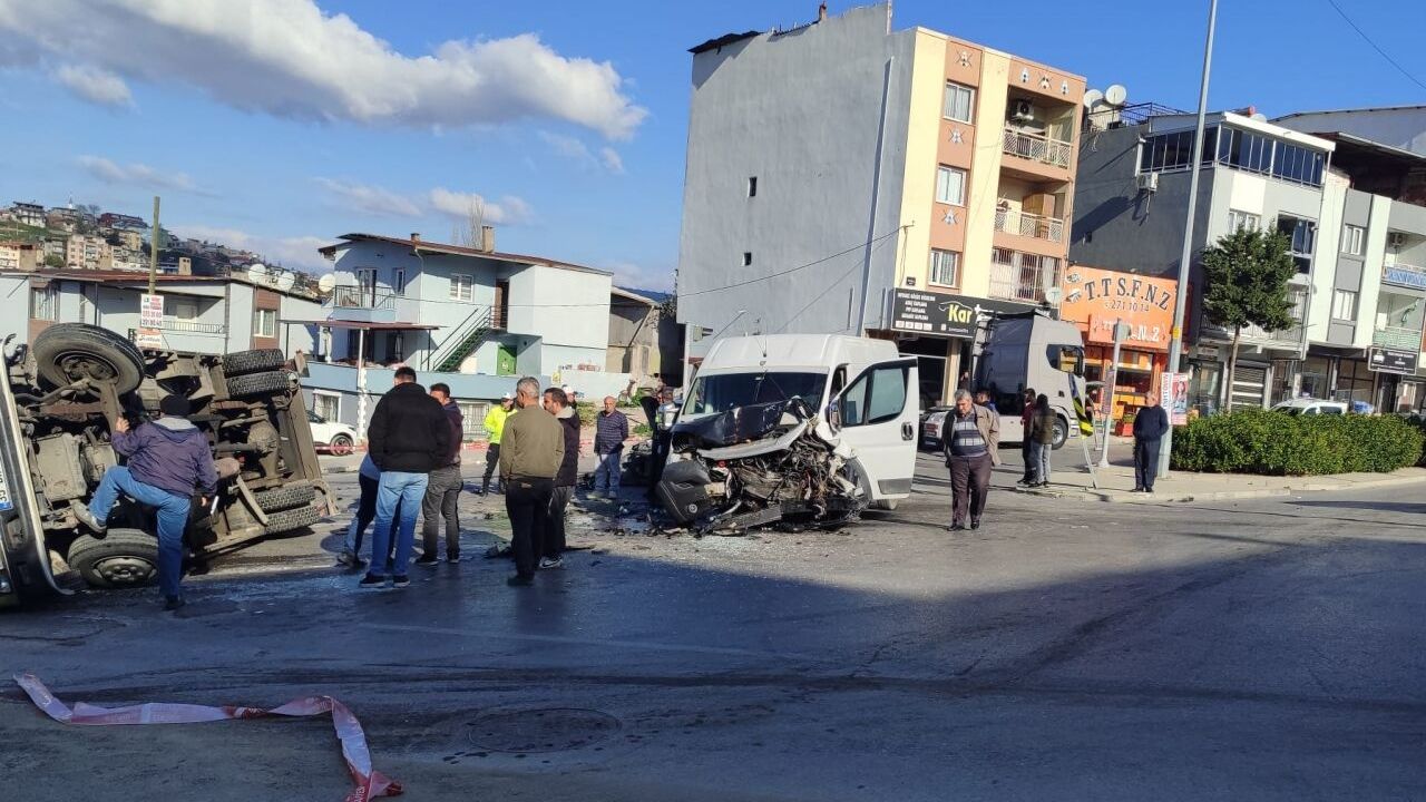 Savrulan panelvan da kamyonete çarptı. Çarpışmanın etkisiyle kamyonet devrildi.