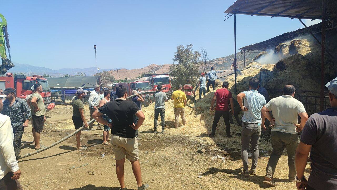 İZMİR (AA) - İzmir'in Ödemiş ilçesinde bir çiftlikte çıkan yangında 16 büyükbaş hayvan telef oldu, yaklaşık 500 balya saman yandı.