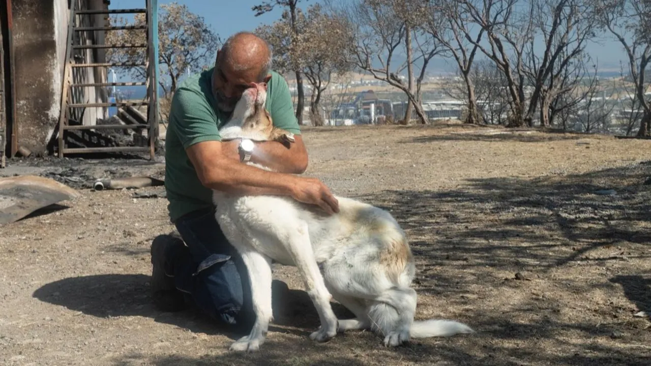 Kaptan'a kavuşunca büyük bir mutluluk yaşayan Fikri Altınkaya, “Neredesin sen? Hoş geldin oğlum. İyi misin?” diyerek köpeğe sarıldı. Altınkaya, “Yangının çıktığı gün ben onu yuvasından çıkardım. Aldım götürdüm. Ama geri kaçtı. Gece birisi görmüş, almış top sahasına bırakmış ama o eve gelmiş. Patileri yandı ama burayı terk etmedi. Sağ olsun İzmir Büyükşehir Belediyesi yetkilileri kedilerimizi, köpeklerimizi alıp tedavi etti. Aşılarını ve bakımlarını yaptı. Hepsine teşekkür ediyorum” diye konuştu.