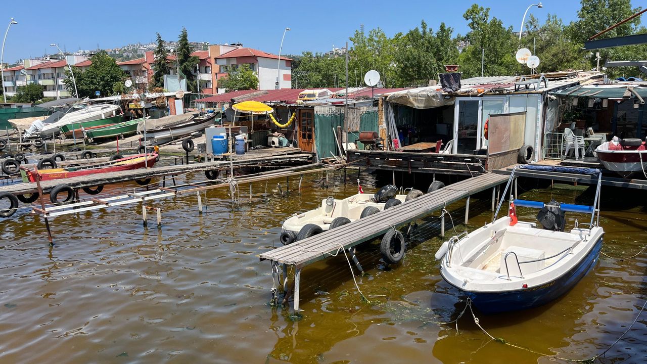 Kocaeli'nin İzmit ilçesindeki marina bölgesinde kıyıya yakın alanda denizin yüzeyinde alg patlaması kaynaklı olduğu değerlendirilen renk değişimi yaşandı.