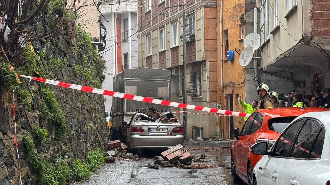 İSTANBUL (AA) - Kağıthane'de, bir kısmı yıkılan bahçe duvarından kopan parçalar, park halindeki araçta hasara neden oldu.