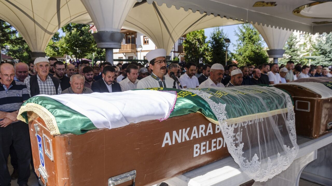 Cenaze törenine, hayatını kaybedenlerin aileleri, Kahramankazan Kaymakamı Abdullah Selim Parlar, Belediye Başkanı Selim Çırpanoğlu ve vatandaşlar katıldı.