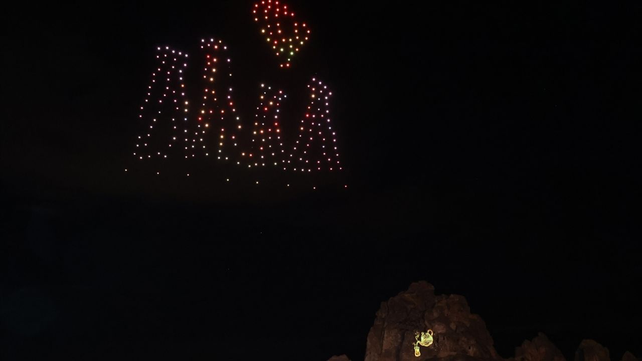 Etkinlik kapsamında tasarlanan sıcak hava balonlarının yerleştirildiği alanda, 3D Mapping gösterisi ile çok sayıda dronun gökyüzünde çeşitli figürler oluşturduğu gösteri izlendi.