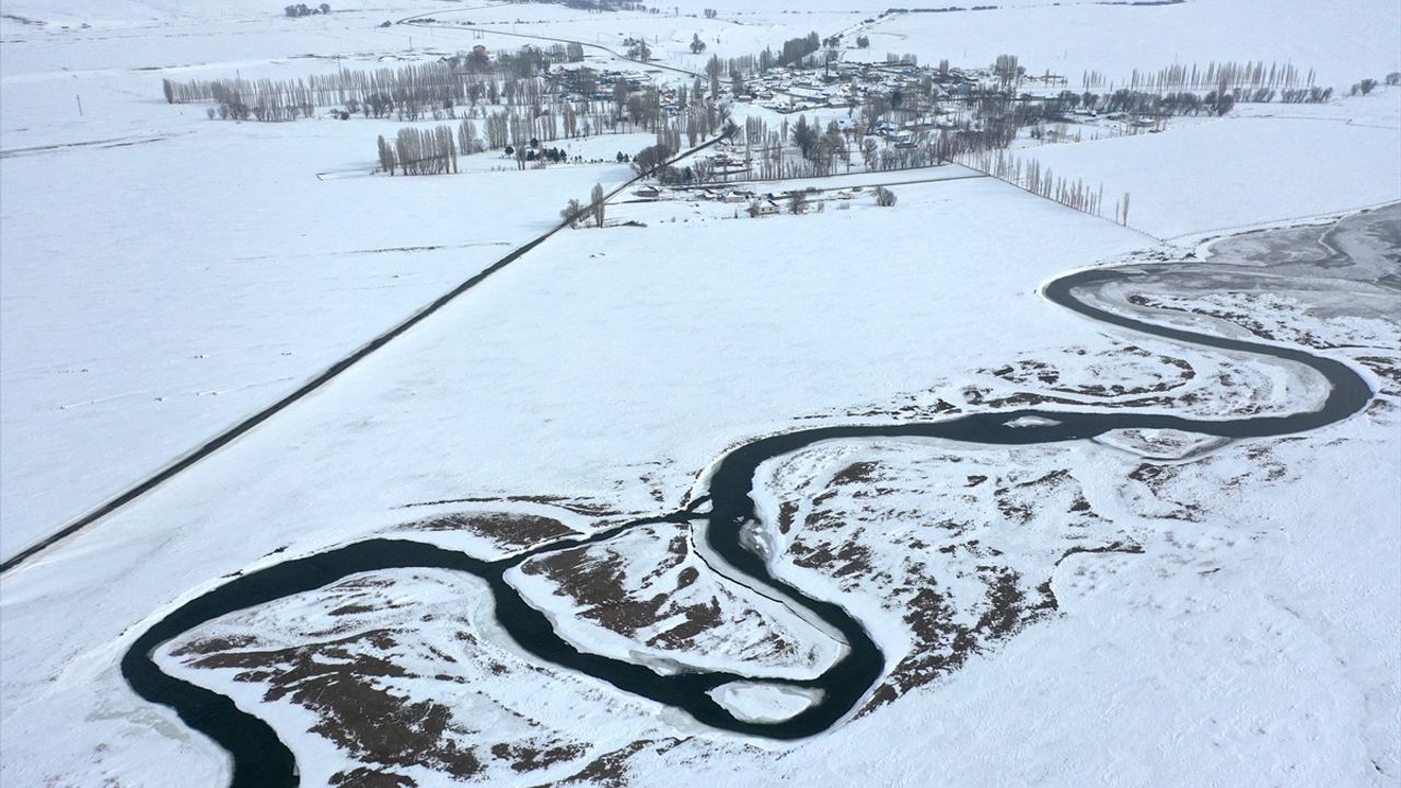 KARS (AA) - Kars'ta etkili olan yoğun kar yağışıyla beyaza bürünen köy ve menderesler dronla görüntülendi.