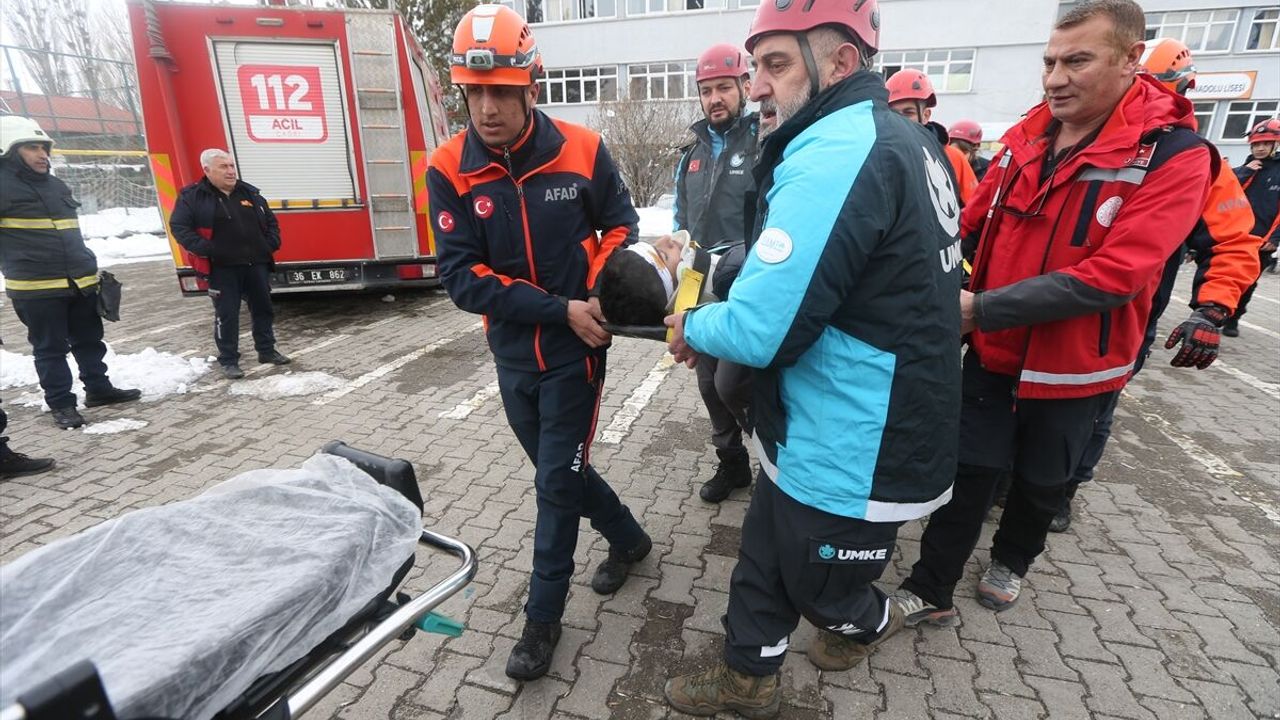 Senaryo gereği binada mahsur kalan 2 öğrenci, AFAD, UMKE, MEB AKUB, itfaiye ve sağlık ekiplerinin çalışmasıyla kurtarıldı.