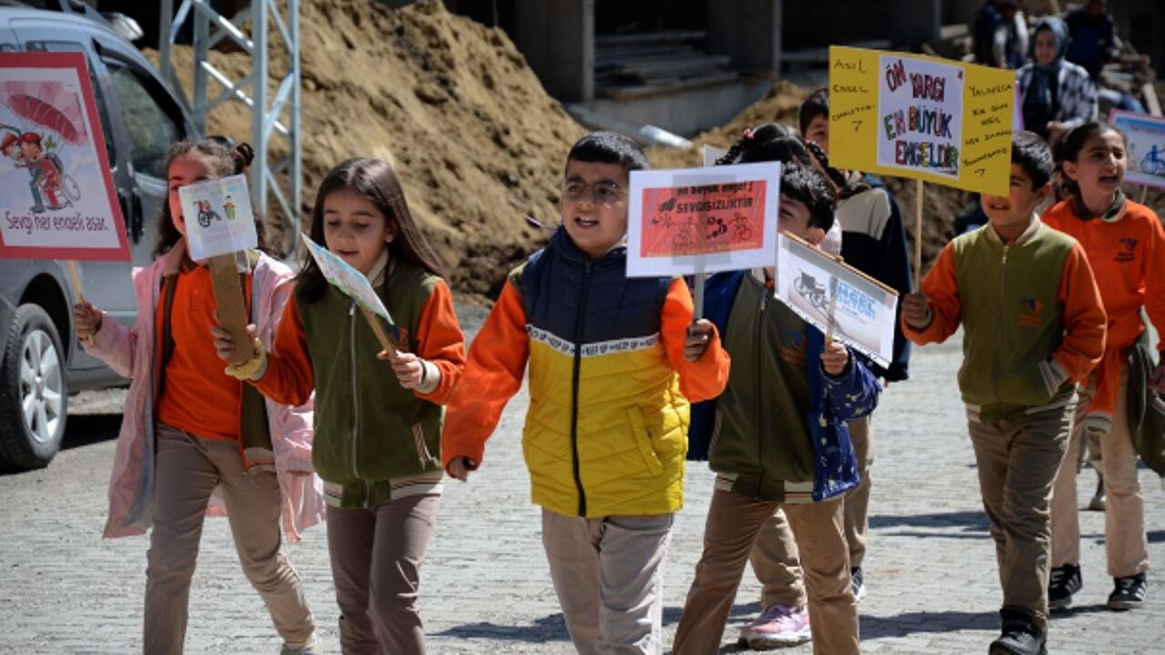Daha sonra ellerinde "Hayatı paylaşmak için engel yoktur", "Engelleri birlikte aşalım" gibi dövizlerle, engelli arabasına binerek ve velilerin eşliğinde slogan atan öğrenciler, yaklaşık 1,5 kilometre yürüyerek Hükümet Konağı'nın önüne geldi.