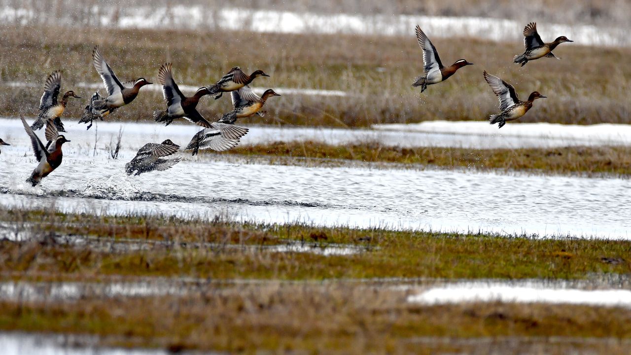 KARS (AA) - Kars'ın Sarıkamış ilçesindeki bazı sulak alanlar, göçmen kuşlarla renklendi.