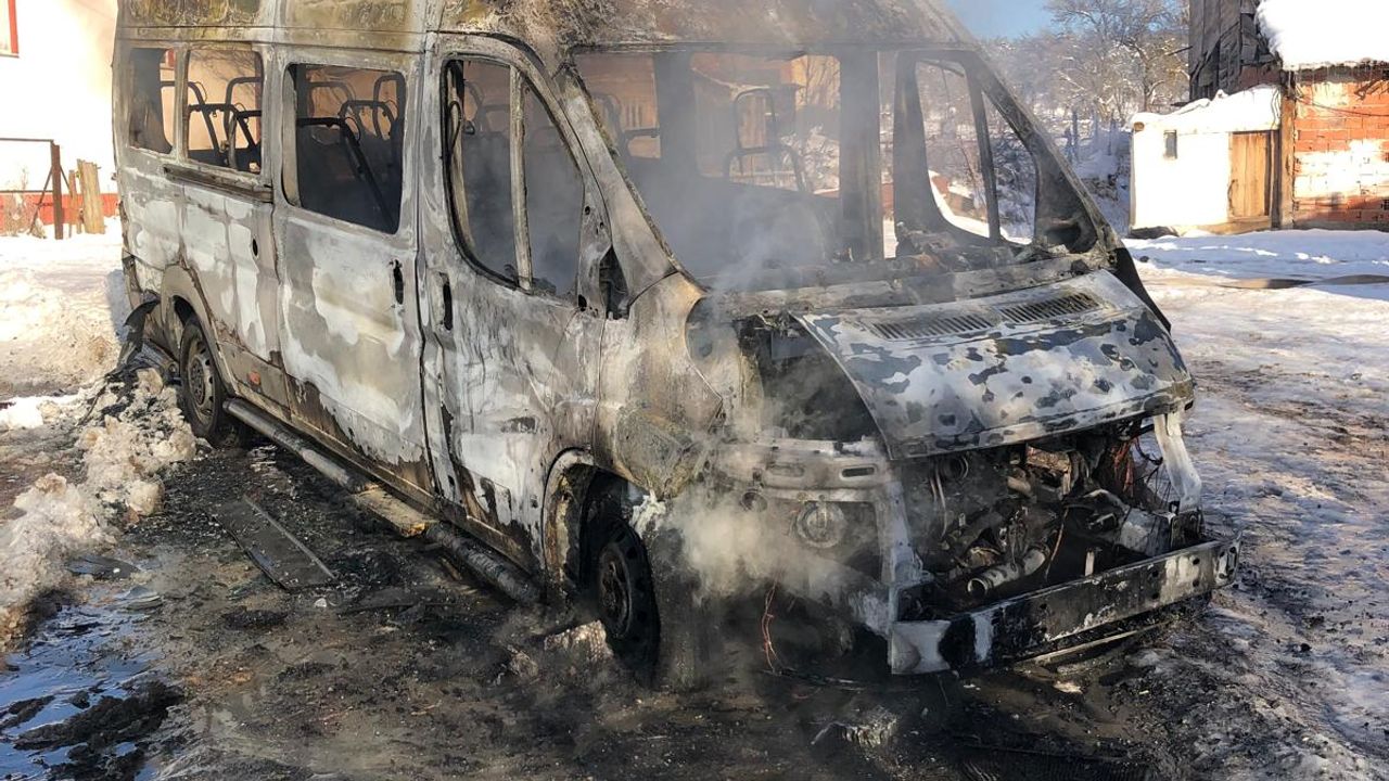 Haydarlar köyünde sabah saatlerinde Mustafa Küçükzengin'e ait ticari minibüs henüz bilinmeyen bir nedenle yandı.