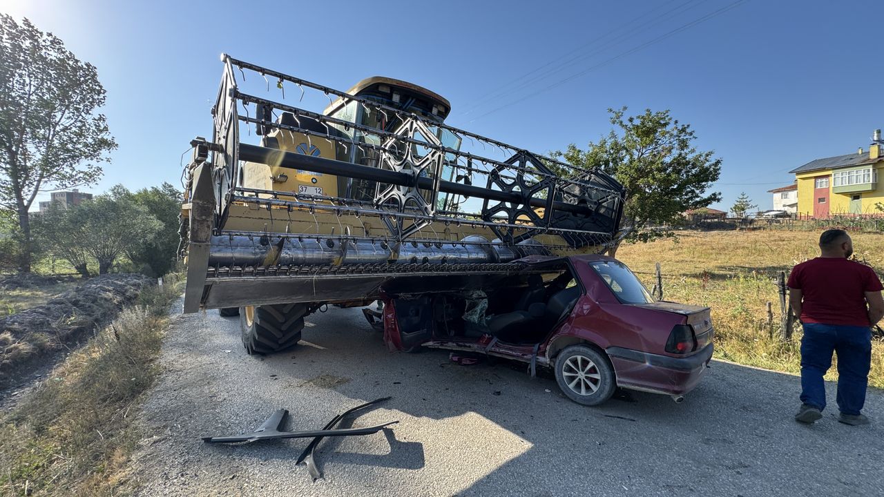 Biçerdöverin altında kalan otomobilin sürücüsü, olay yerinde hayatını kaybetti.