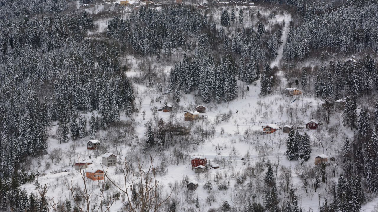 Kar kalınlığının yer yer 1,5 metreyi aştığı bölgede tarihi evler ve çevresini saran ormanlık alanlar güzel görüntü oluşturdu.
