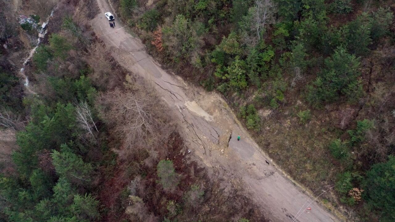 KASTAMONU (AA) - Kastamonu'nun Çatalzeytin ilçesinde karların erimesinin ardından köy yolunda çökme meydana geldi.