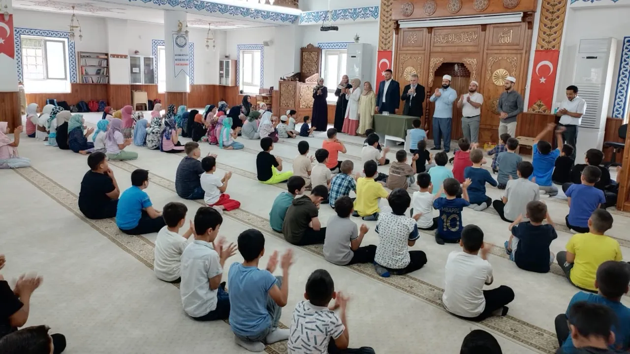 Müftü Uzun, öğrencilerle yaptığı sohbette, “Evlatlarını camilere emanet eden anne-babalara, özveriyle eğitim veren hocalarımıza ve en önemlisi sıcak yaz günlerinde Kur’an öğrenmek için camilere gelen siz yavrularımıza teşekkür ediyorum. Bu sevginiz bizi çok mutlu ediyor” dedi.
