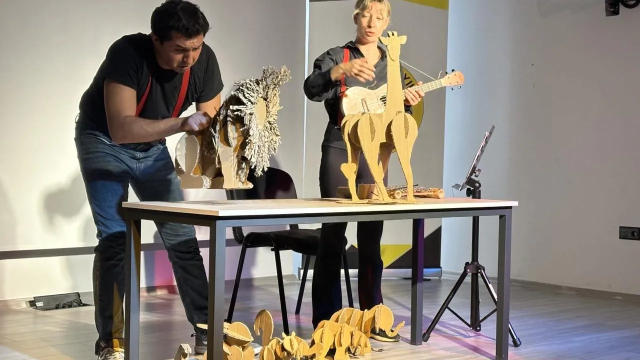 İzmir Büyükşehir Belediyesi Şehir Tiyatroları’nın çocukları sanatla buluşturmak üzere sahnelediği “Kendini Arayan Zürafa” oyunu, Aliağa ve Kadifekale’de sahnelendi. Oyuna büyük ilgi gösteren çocuklar ve öğretmenleri neşeli bir gün geçirdi.İZMİR (İGFA) - İzmir Büyükşehir Belediyesi Şehir Tiyatroları’nın (İzBBŞT), çocukları sanatın büyüleyici gücüyle buluşturmak üzere sahnelediği “Kendini Arayan Zürafa” oyunu kentin farklı noktalarında miniklerle buluşmaya devam ediyor. Selen Şeşen’in yazdığı, Dine Altıok ve Devrim Karakoyun’un yer aldığı oyun, İzmir Büyükşehir Belediyesi Kütüphaneler Şube Müdürlüğü iş birliği ile Aliağa 100. Yıl Ortaokulu ve İzmir Büyükşehir Belediyesi Mercek Kadifekale Projesi kapsamında Kadifekale Zübeyde Hanım İlkokulu’nda 4 farklı gösterim yaptı.