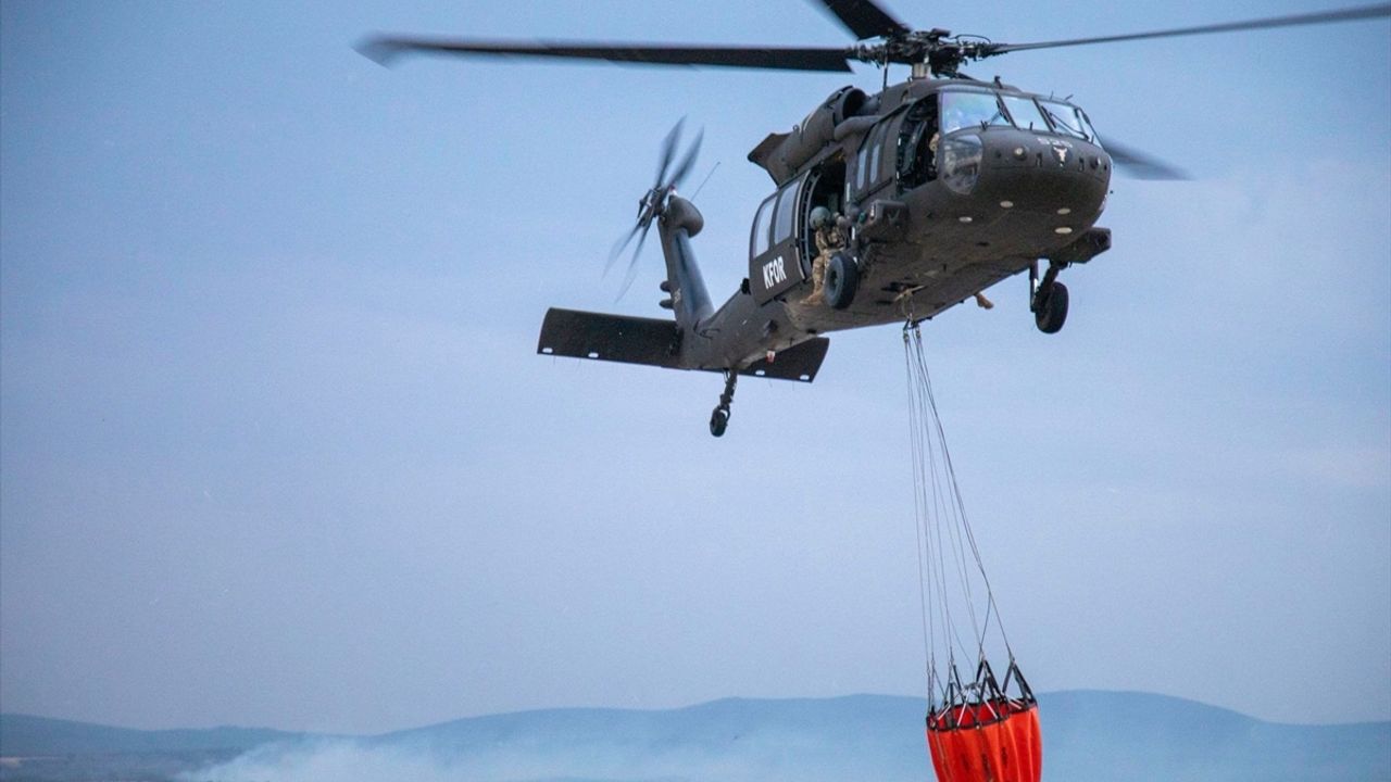 KFOR'dan yapılan yazılı açıklamada, Kosova'da sivil halkı ve altyapıyı tehdit eden alevleri kontrol altına almak amacıyla iki ekibin yangın bölgelerine havadan su desteği sağladığı bildirildi.