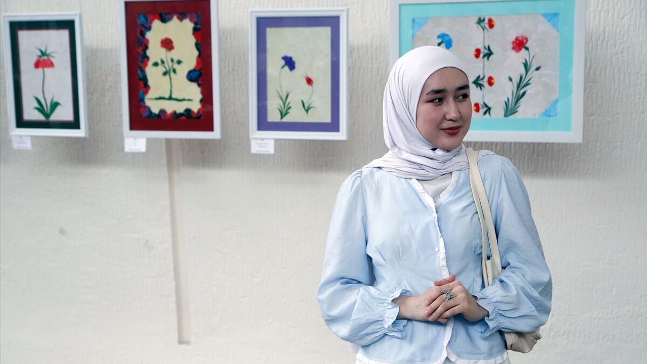 Türkiye'nin Bişkek Büyükelçiliğinin destekleriyle Kırgız Ulusal Güzel Sanatlar Müzesi'nin ev sahipliğinde düzenlenen sergide, dünyaca ünlü ebru sanatçısı Hikmet Barutçugil ve öğrencisi Muhlisa İmamova, Türk süsleme sanatının örneklerini yansıtan eserlerini tanıttı.