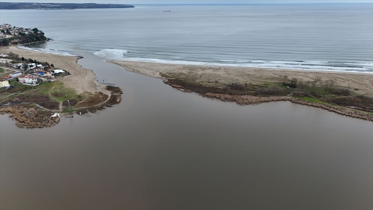 KIRKLARELİ (AA) - Kırklareli'nde sağanak ve kar yağışlarının ardından su seviyesi yükselen İğneada Longoz Ormanları'ndaki Mert Gölü, yeniden denizle birleşti.