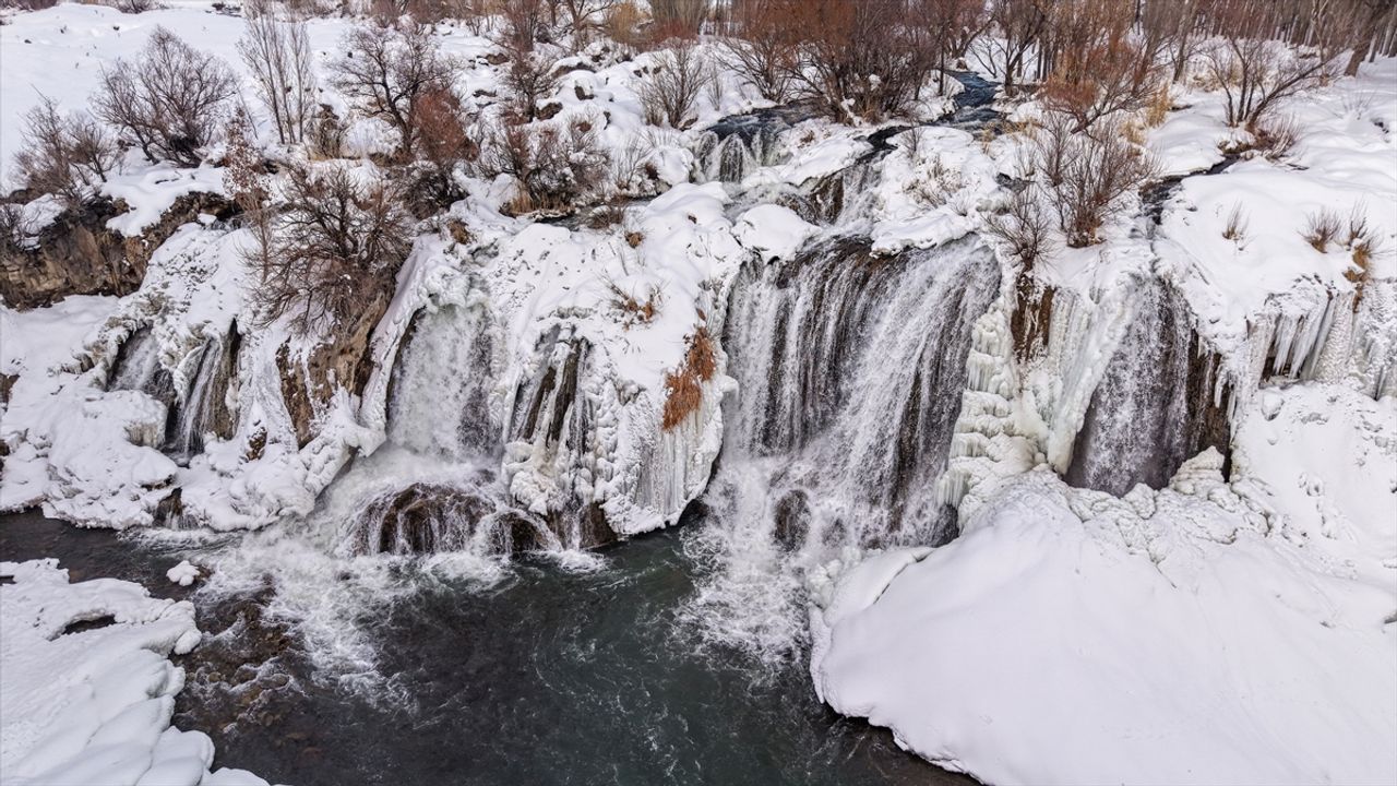 VAN (AA) - Van'ın Muradiye ilçesinde etkili olan dondurucu soğuklar nedeniyle Muradiye Şelalesi kısmen dondu.
