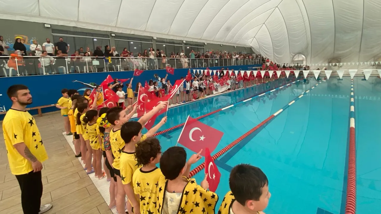 Kocaeli'de İzmit Belediyesi Spor İşleri Müdürlüğü, 23 Nisan Ulusal Egemenlik ve Çocuk Bayramına özel yüzme yarışı düzenledi.KOCAELİ (İGFA) - İzmit Belediyesinin düzenlediği 23 Nisan Ulusal Egemenlik ve Çocuk Bayramı etkinlikleri hafta sonu başladı. Milli Bayramları coşkuyla kutlamaya devam eden İzmit Belediyesi, 23 Nisan Ulusal Egemenlik ve Çocuk Bayramı etkinlikleri kapsamında Kapalı Yüzme Havuzunda yüzme yarışı düzenlendi.