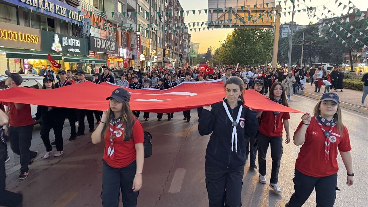 Korteje katılanlar, marşlar ve tezahüratlar eşliğinde ellerinde bayraklar ve meşalelerle rota boyunca yürüyerek 19 Mayıs Atatürk'ü Anma, Gençlik ve Spor Bayramı'nı kutladı.