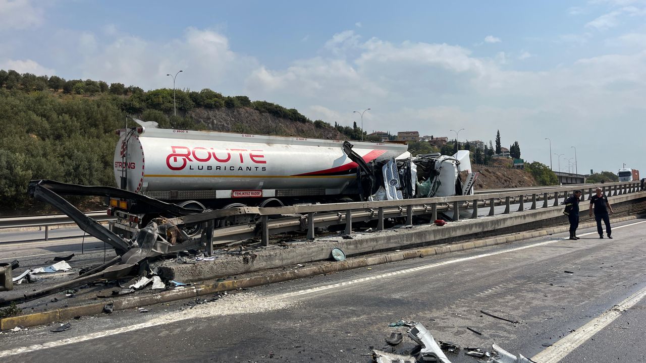 Kaza nedeniyle bölgede uzun araç kuyrukları oluşurken, bir süre yan yoldan kontrollü sağlanan ulaşım, tankerin çekilmesinin ardından normale döndü.