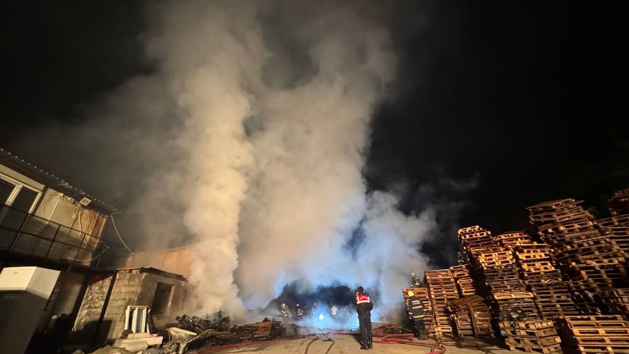 Tavşanlı Mahallesi'ndeki bir palet deposunda henüz belirlenemeyen nedenle yangın çıktı.