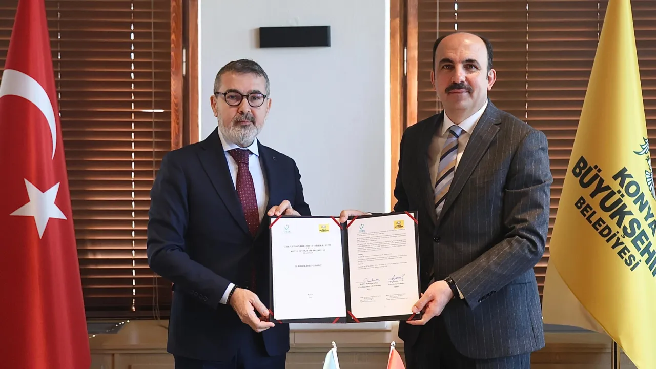 Konya Büyükşehir Belediye Başkanı Uğur İbrahim Altay ile TİHEK Başkanı Prof. Dr. Muharrem Kılıç, Konya Büyükşehir Belediyesi Taş Bina’da insan hak ve özgürlüklerinin korunması ve geliştirilmesi amacıyla iş birliği protokolü imzaladı.