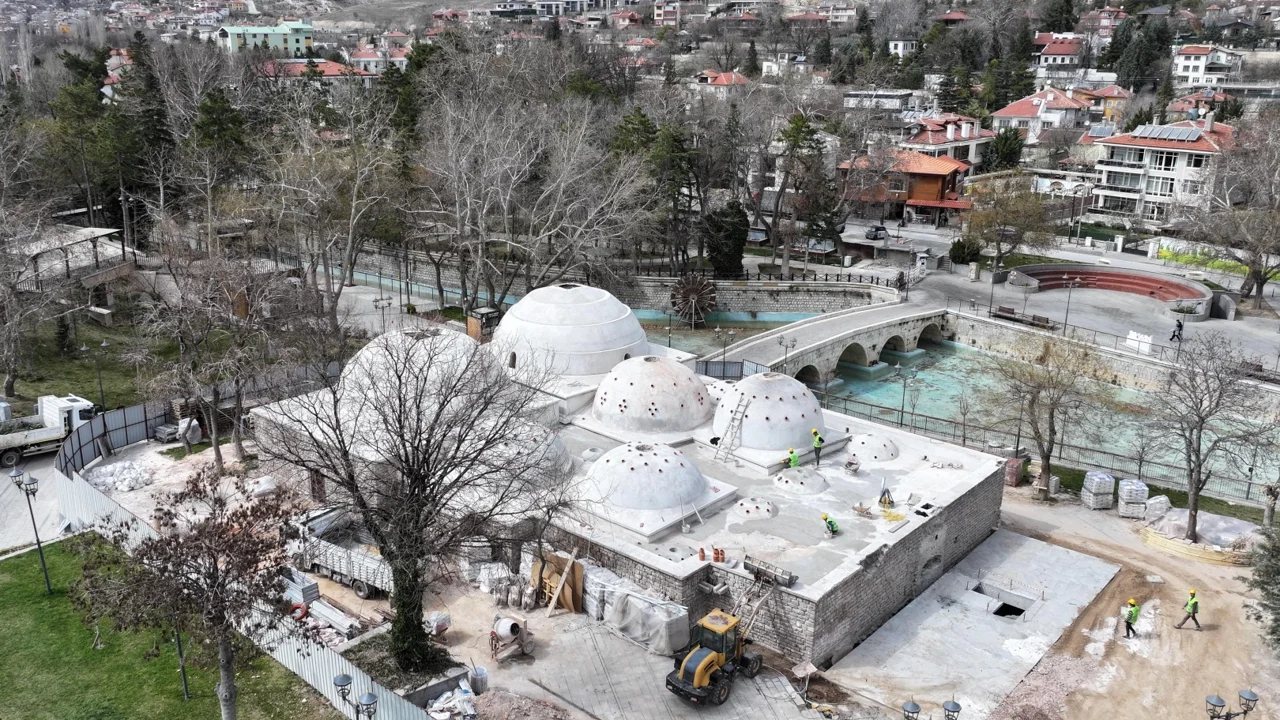 Konya Büyükşehir Belediye Başkanı Uğur İbrahim Altay, Tarihi Meram Köprüsü yanında bulunan 600 yıllık Karamanoğlu Mehmet Bey Hamamı’nı ihya edecek restorasyon çalışmasını inceledi.KONYA (İGFA) - Konya Büyükşehir Belediyesi, Tarihi Meram Köprüsü’nün yanında bulunan Karamanoğlu Mehmet Bey Hamamı’nın restorasyonunu kesintisiz şekilde sürdürüyor.