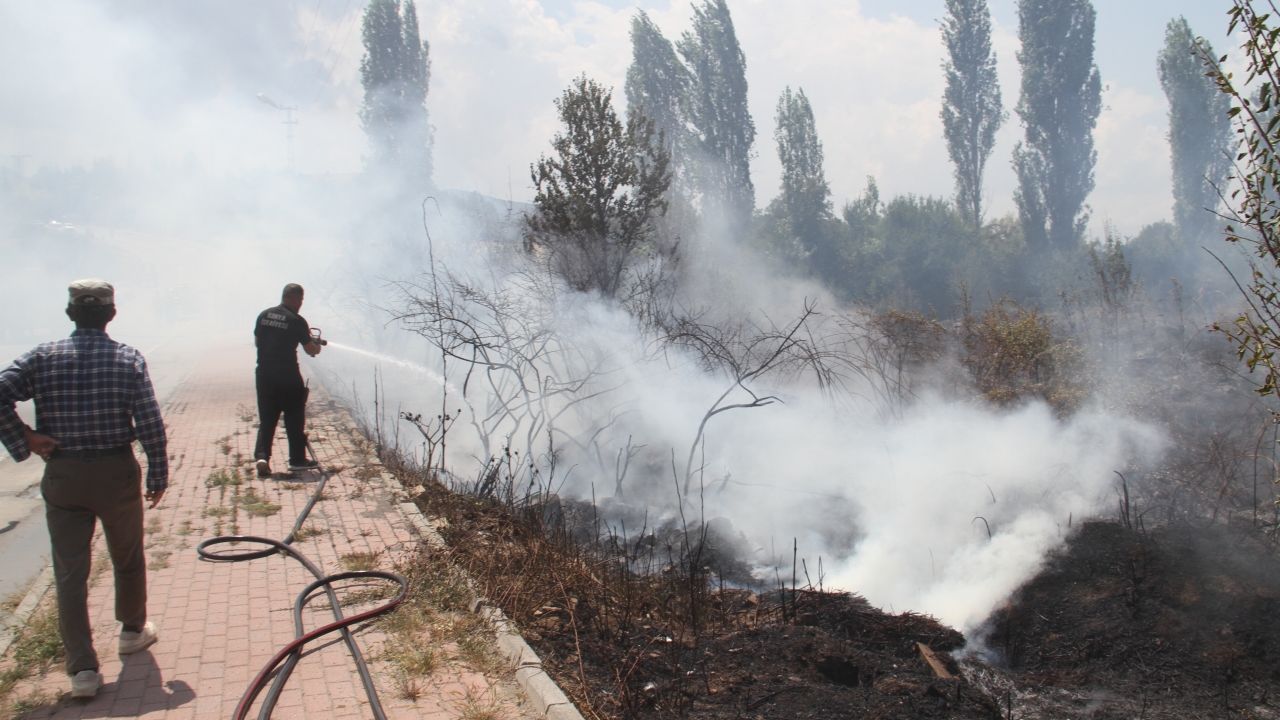Yangının tarla üzerinden geçen yüksek gerilim hatlarından kaynaklanmış olabileceği ihtimali üzerinde durulurken, vatandaşlar da bir patlama sesi duydukları yönünde bilgi verdi.