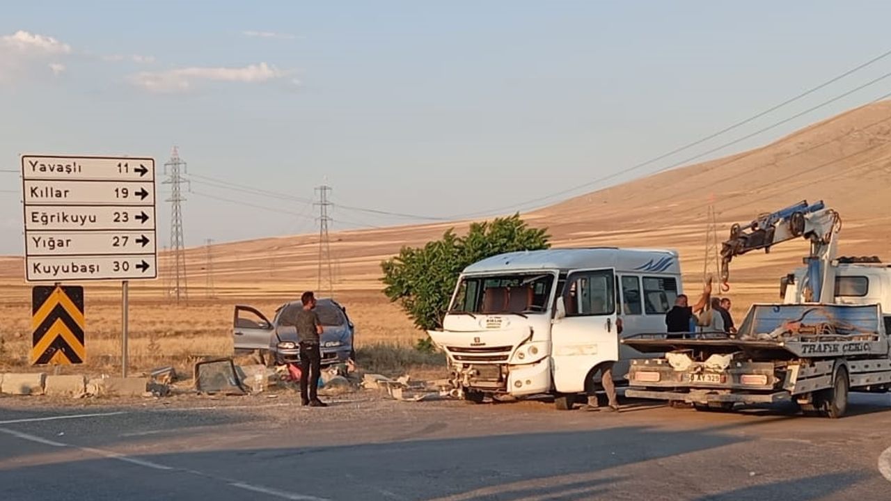 KONYA (AA) - Konya'nın Yunak ilçesinde tarım işçilerini taşıyan minibüsle otomobilin çarpışması sonucu 16 kişi yaralandı.