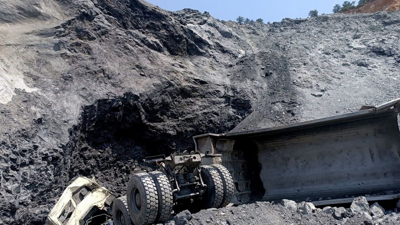 Oysu köyü yakınlarındaki grafit maden ocağında Üzeyir Kılıç (54) idaresindeki henüz plakası öğrenilemeyen hafriyat kamyonu şarampole devrildi.