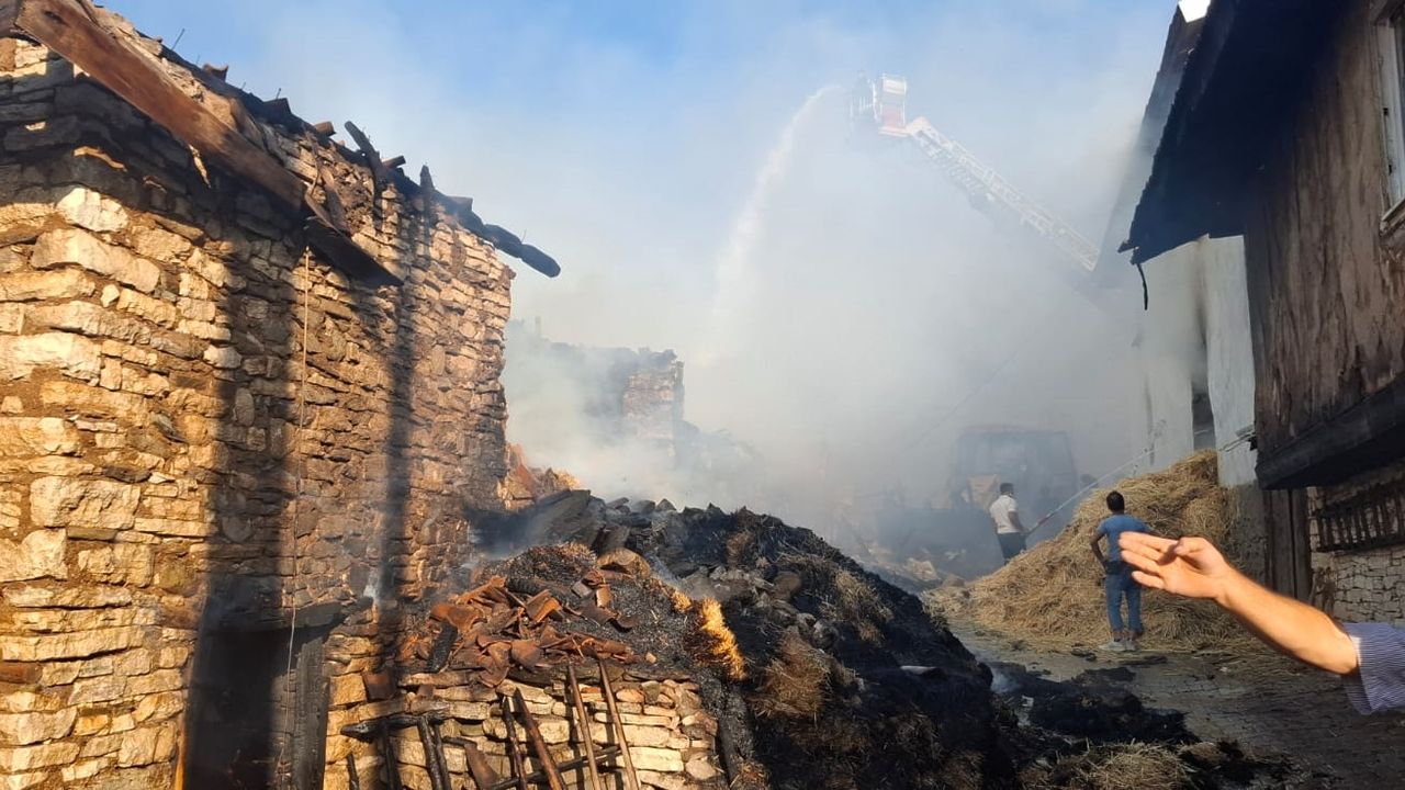Ekiplerin yaklaşık 4 saatlik çalışmasıyla söndürülen yangında, 2 ev ve 4 samanlık kullanılamaz hale geldi.