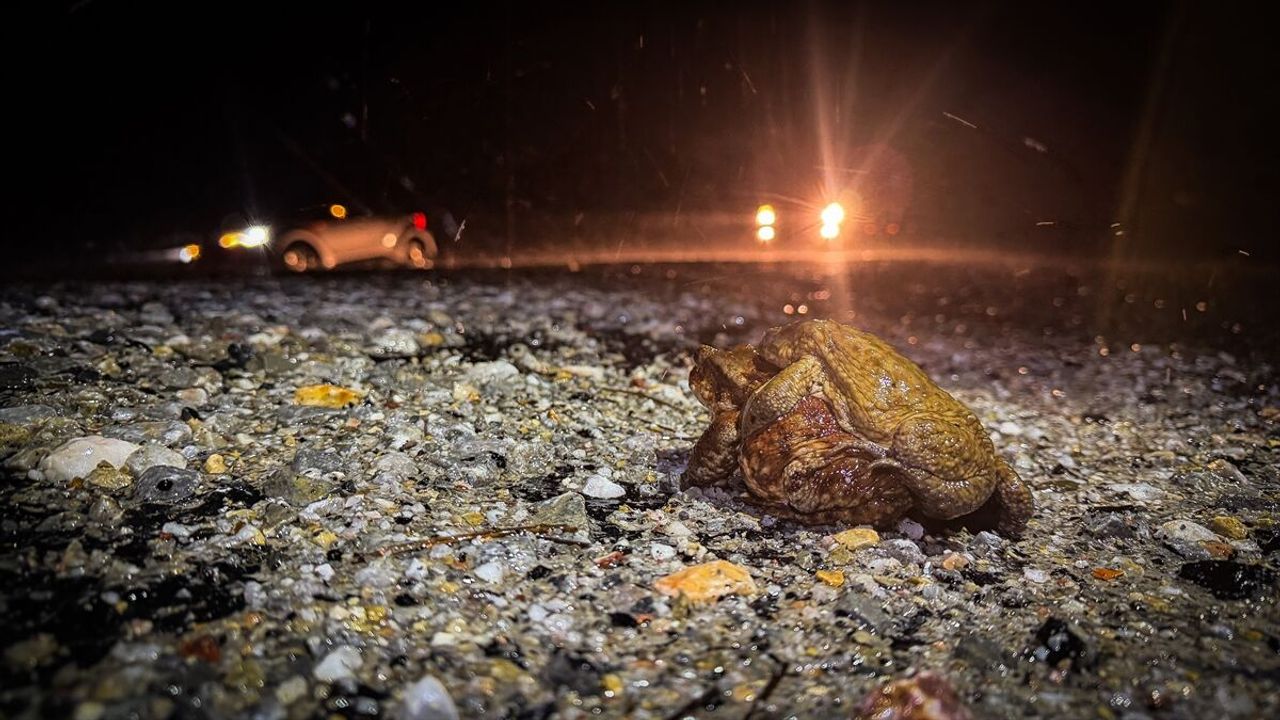 Yüzlerce kurbağanın aynı anda yola çıkması, özellikle akşam saatlerinde dikkat çeken görüntüler oluşturuyor. Kurbağaların bir kısmı birbirlerinin sırtında ilerlerken, bazıları ise yoğun araç trafiği nedeniyle ezilerek can veriyor.