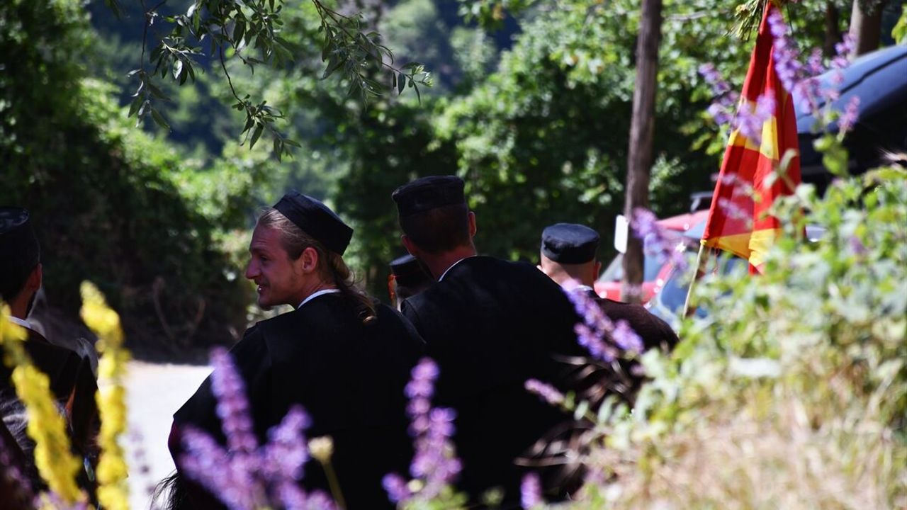 Kuzey Makedonya'nın farklı bölgelerinden ve yurt dışından gelen çok sayıda ziyaretçi, gelin ve damadın geleneksel adetlere göre evlendiği bu özel törene tanıklık etti.