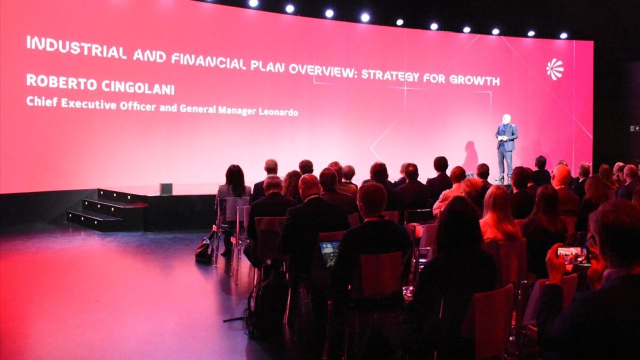 Leonardo Üst Yöneticisi Roberto Cingolani, şirketin Roma'da düzenlediği etkinlikte, firmanın 2026 Endüstriyel Planı ve gelecek hedeflerine dair kapsamlı bir sunum yaptı.
