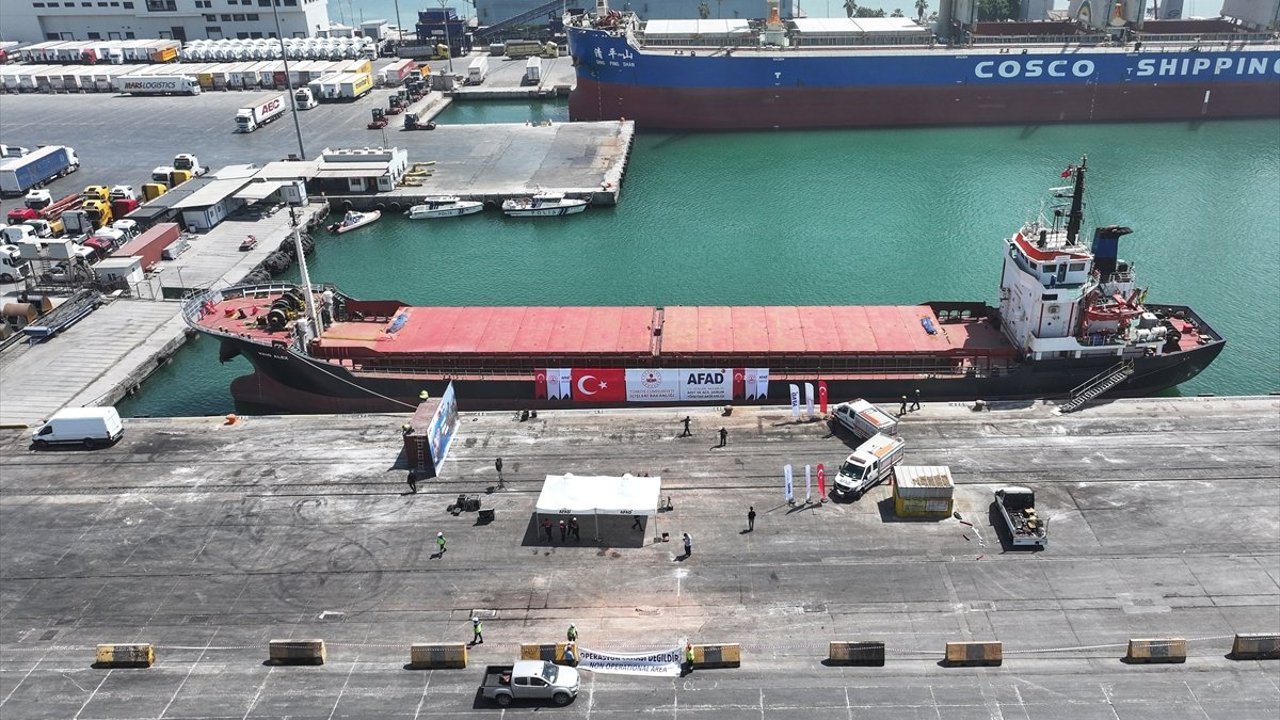 Lübnan'da İsrail saldırıları nedeniyle yerinden edilen yüz binlerce kişi için AFAD ve Türk Kızılay işbirliğinde başlatılan çalışmalar kapsamında hazırlanan 7 bin 200 çadır, 22 bin battaniye, 12 bin gıda kolisi ve 1000 hijyen kolisi olmak üzere 730 tonluk insani yardım malzemesi Mersin Uluslararası Limanı'ndan gemiye yüklendi.