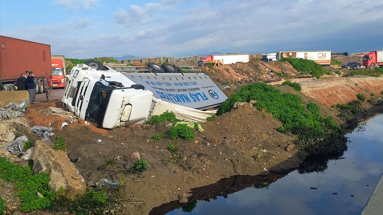 E.K'nin kullandığı 66 AED 590 plakalı palet yüklü kamyon, Manisa-Akhisar yolunun Gediz Kavşağı geçişinde kontrolden çıkarak şarampole devrildi.