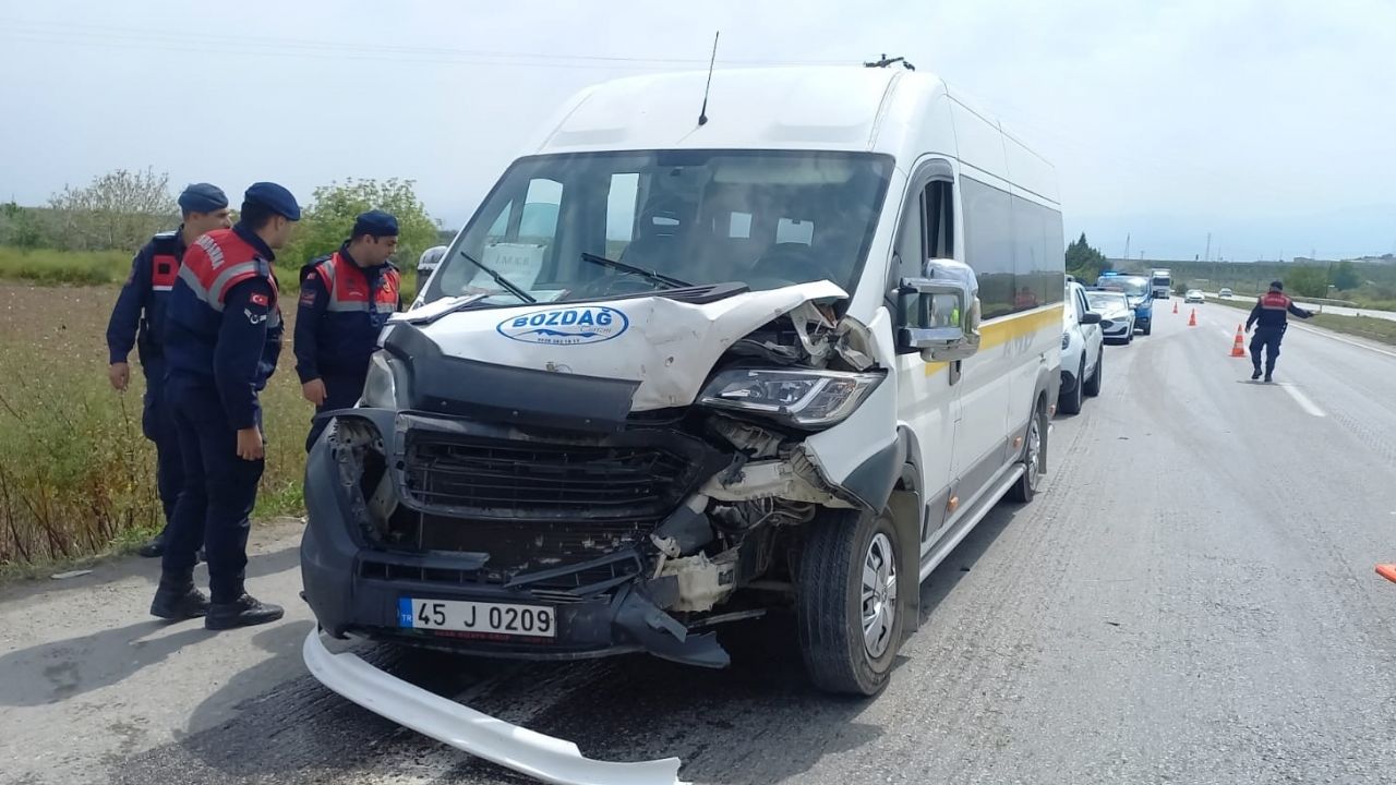 Yunusemre Atatürk Ortaokulu öğrencilerini taşıyan Ruhi Çelik yönetimindeki 45 J 0209 plakalı minibüs, Karaoğlanlı Mahallesi mevkisinde aynı okul öğrencilerinin bulunduğu Tarık Bozdağ yönetimindeki 45 J 0684 plakalı minibüse arkadan çarptı.